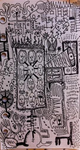 He frequently stayed with me, and preferred also dragging my twin mattress to the floor when we had sex. He would always pause beforehand, hovering over me, asking “should we?” He would wait for me to laugh and say yes, and then he would say “thank you princess, my queen, yes, let’s!” After I fell asleep he would stay awake, doodling miniscule drawings with spirals and stairs and small people with bugged eyes, all connected but still confusingly scattered.