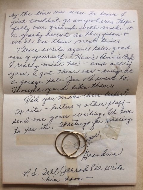 Oh how I wish your grandma could read this! It would mean so much to her to know that you remembered her, and your visits, so fondly, and that you had kept, and now shared, this letter. She would be so proud of you and would be so happy to have another writer in the family, and to see how you’ve grown to look so much like she did at your age. And how she would love to know your children! It’s hard for me to imagine that there are so many great-grandchildren who she never had the pleasure of knowing, and who never had the chance to meet her. I sometimes dream of her, still with us, and we are at a family gathering, with all of us there. They are happy reunions, but sad awakenings. Still I’m thankful for those dreams, though the waking up is hard.