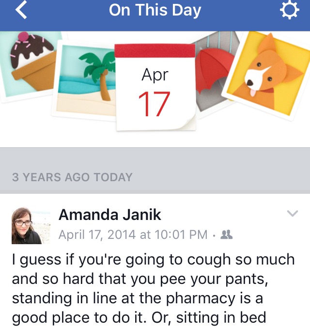 Today’s Memories also reminded me that it was only a short year ago that my boyfriend and I were in New York, and I read at Mortified NYC. Which means it has also been a year since I saw my dear friend Mandi. Both happy memories, but which mean it has also almost been a year since Prince died. When that happened, I wrote about it once. Then again. Then again. Then I didn’t write again for months.